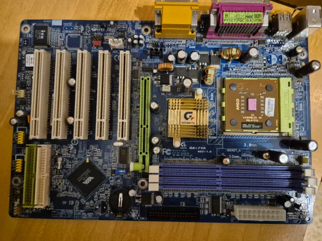 Placa base Gigabyte GA-7VA. Lleva tiempo desmontada por lo que no puedo asegurar que funcione todo correctamente al 100 %