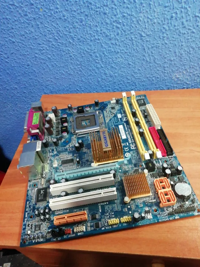 Placa base Gigabyte GA-945GCMX-S2. - Socket LGA775. - Soporta memoria DDR2. - Puertos SATA. - Ranuras PCI Express y PCI.