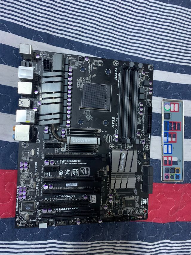 Detalles del productoPlaca base Gigabyte con condensadores metálicos, compatible con socket (AM3+) de AMD y zócalos de Ram DDR3 Dual channel. La placa estéticamente está impoluta al 100% (no se le aprecia ningún componente quemado ni nada por el estilo) pero no da señal de video. (Se entrega con su respectiva pila de Bios y su chapilla metálica trasera).