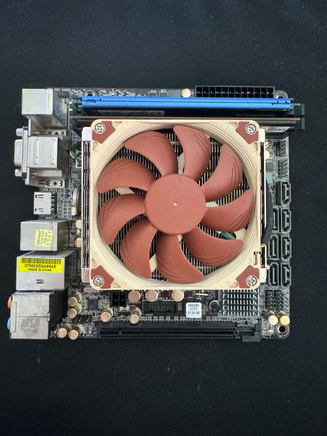 Detalles del productoPlaca base compacta en formato ITX con procesador AMD A10-5800 y 6GB de memoria RAM DDR3. Incluye un disipador Noctua para una refrigeración eficiente.
