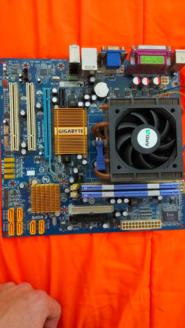 Detalles del productoVendo Placa Gigabyte con procesador AMD X64 Quad core 2'6Ghz más memoria ram Kingston 4Gb. Ideal para PC sobremesa funciones básicas. Funciona perfectamente, vendo por actualizar a equipo nuevo.
