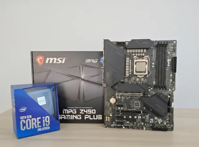 Procesador Intel Core i9-10900K y placa MSI MPG Z490 Gaming Plus en perfecto estado, recién limpiados y con pasta térmica nueva.
