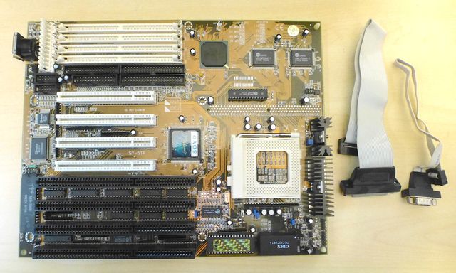 Dispone de 4 slot RAM, 4 slot ISA, 4 slot PCI, puertos serie y paralelo, puertos USB, interfaz IDE y Floppy... Lo habitual en estos dispositivos de los 90's.
