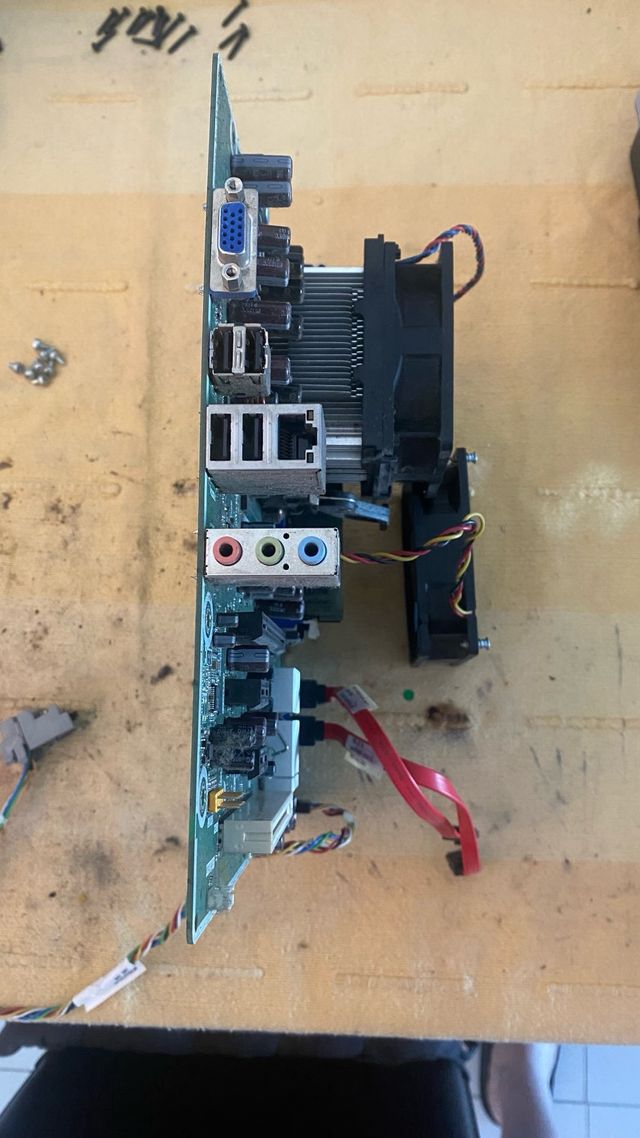 Placa base pc de sobremesa. Incluye el boton de encendido, 4 gb de ram y ventilador exterior. El procesador es: AMD athlonII x2 215 processor 2.70 GHZ.