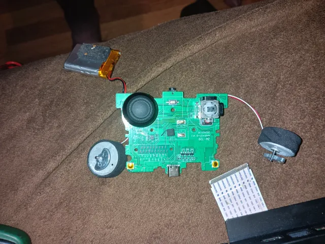 Componentes internos para mando de PlayStation 4. - Placa base. - Batería. - Joystick. - Ruedas. - Cable plano.