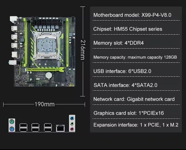 Detalles del productoPlaca base modelo X99-P4-V8.0 con chipset HM55.