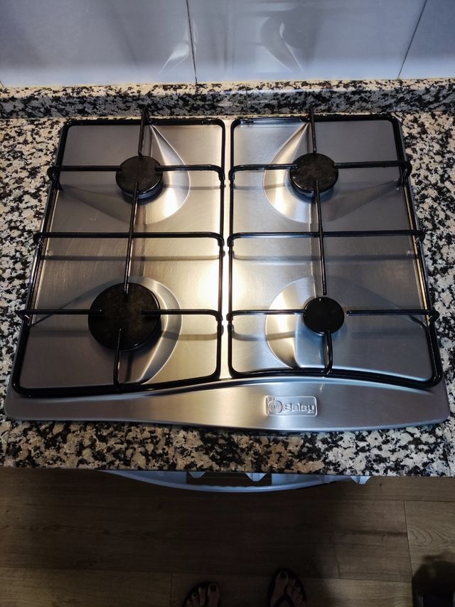 Detalles del productoHorno empotrado y placa de cocina de gas Balay con SOLO TRES quemadores por falta de una cuarta pieza, concretamente un CARDAN (ver foto de la pieza). Medidas del producto