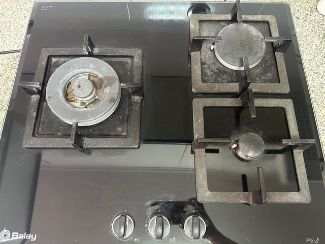 Placa de gas de la marca Balay. - Encendido electrónico. - Válvulas de seguridad. - Parrillas de hierro fundido.