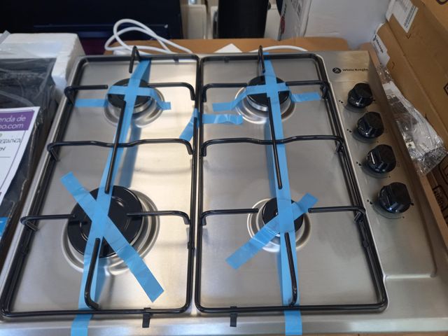 Detalles del productoPlaca encimera de gas. Marca White Knight. Color inox. Gas butano. Cocina de 4 fuegos. Medidas del producto 58 x51x4.9 cm. Nuevo a estrenar . Producto con garantía. Se hacen envíos a toda España. Visítanos en nuestra tienda calle Sambara 101, Madrid. síguenos en Facebook e Instagram tutiendadesegundamano. Web tutiendadesegundamano.