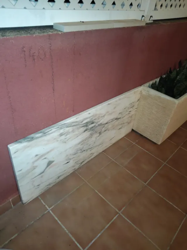Pieza de mármol con vetas naturales, ideal para decoración o proyectos. - Material: Mármol - Diseño: Vetas grises y rosadas sobre fondo blanco