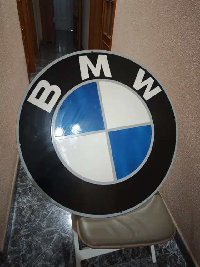 Placa circular con el icónico logo de BMW. Ideal para coleccionistas o entusiastas de la marca. - Diseño circular. - Colores: negro, blanco y azul. - Letras 'BMW' en blanco.