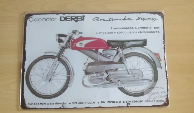 Detalles del productoPlaca de Metal decorativa vintage de ciclomotor Derbi Antorcha Super.