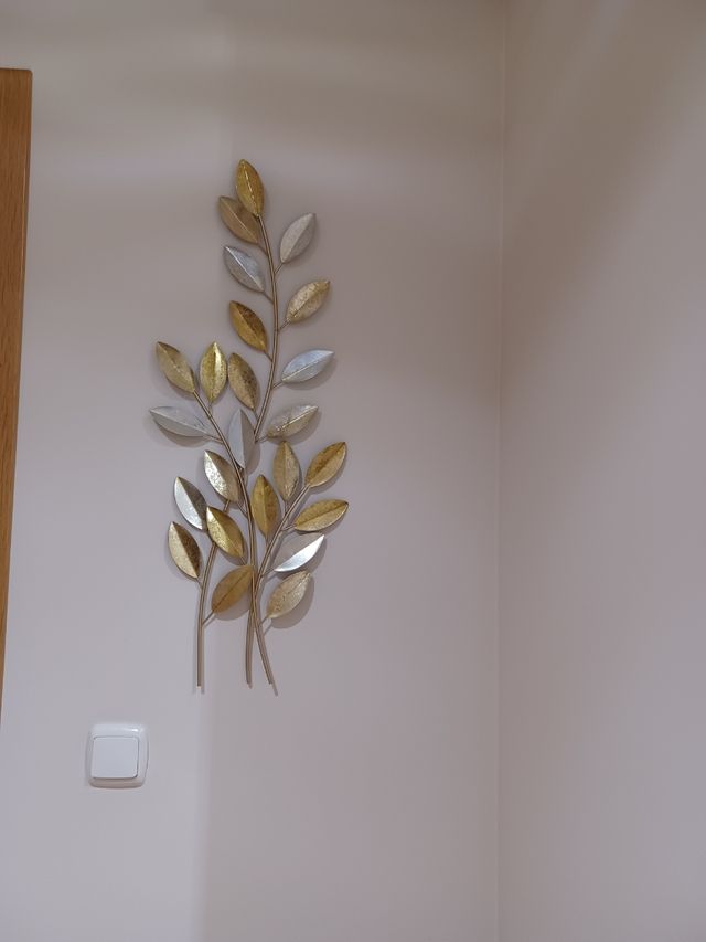 Placa Decorativa Hojas Metal Dorado y Plateado