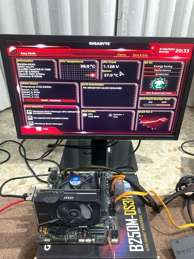 Conjunto de placa base Gigabyte B250M DS3H y procesador Intel Core i5-7500.