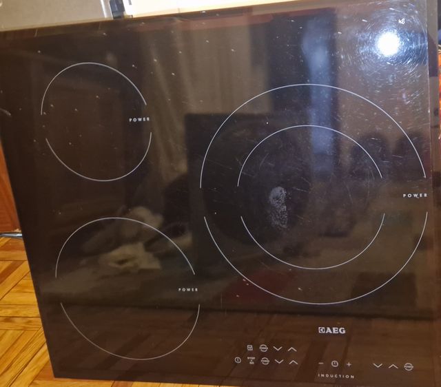 Detalles del productoVendo placa de inducción AEG de 3 zonas. Está en buen estado, aunque presenta algunas marcas de uso en la superficie de cristal.