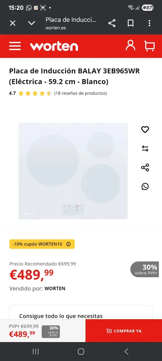 Placa inducción Balay 3EB965WR nueva a estrenar