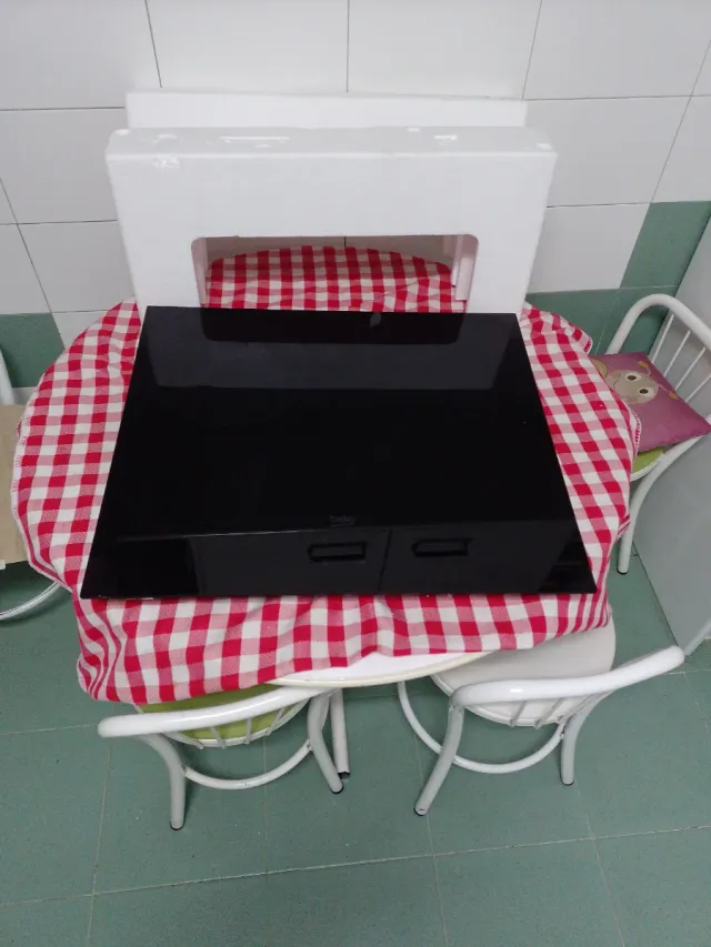 Detalles del productoPlaca de inducción Beko con tres zonas de cocción. La mas grande no funciona. Las otras dos si. El cristal impoluto, ni un arañazo