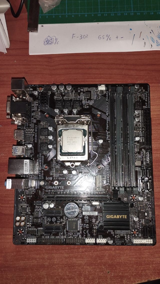 Detalles del productoVendo pack de placa + cpu por 85€ placa gigabyte b250m ds3h con soporte para ddr4 de hasta 64gb ,puerto para ssd M2 3gen (mirar modelos en pagina oficial para mayor detalles ), cpu i5 7600k con una frecuencia base de 3.8 GHz y desbloqueado nunca se le ha echo overclock (mirar para más detalles en pagina oficial de Intel) precio no negociable no se hacen envíos trato en persona.