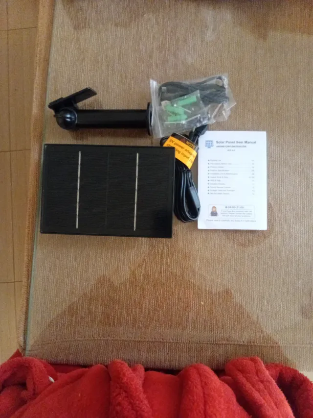 Detalles del productoPlaca solar con soporte ajustable y accesorios de montaje.