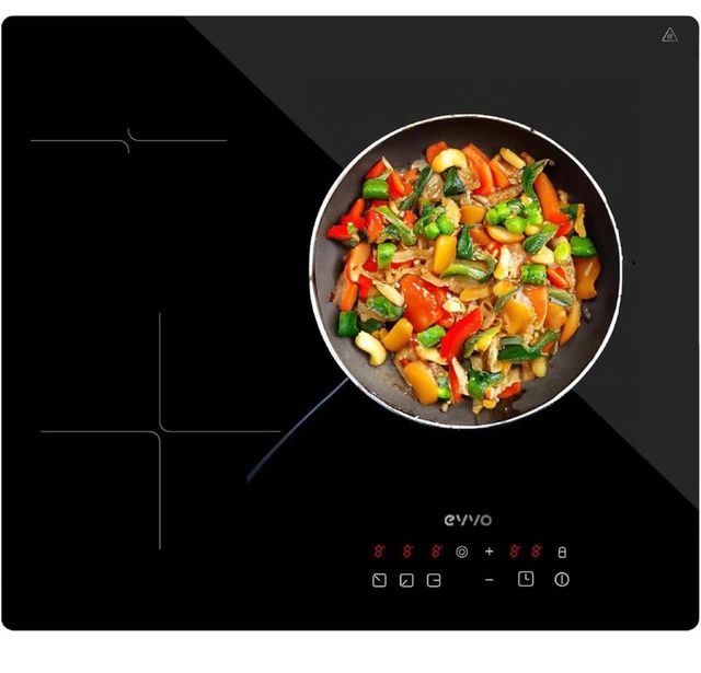 Detalles del productoPlaca vitrocerámica de la marca EVVO con tres zonas de cocción. Medidas 5x58x51 (cm)