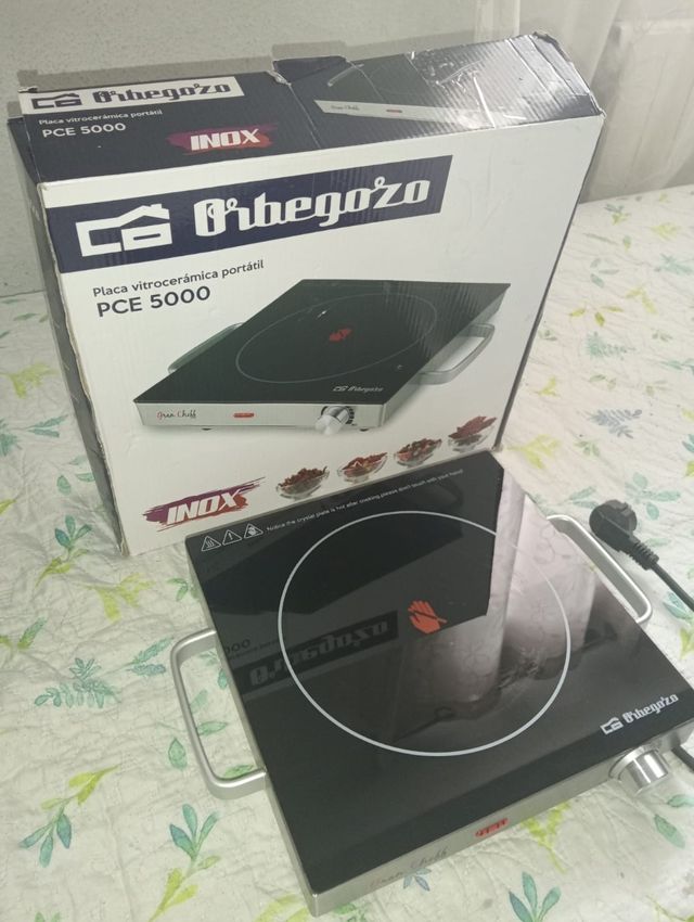 Detalles del productoPlaca vitrocerámica portátil de la marca Orbegozo, modelo PCE 5000.