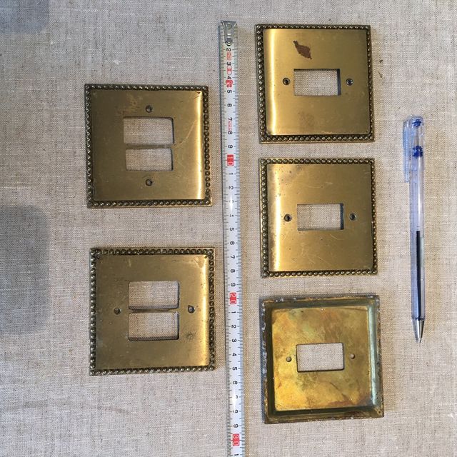 Detalles del producto5 placas metalicas de interruptores electricos, sin mecanismos . De calidad y en laton, de estilo Art Deco y con bordes perlados.