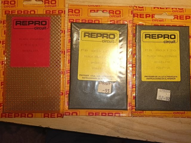 Detalles del producto Una placa de topos tipo ct11, y dos placas vírgenes 80 x 120. Para montajes de circuitos electrónicos. Una de las dos está desprecintada pero no abierta. Totalmente nuevas. Precio por las tres.