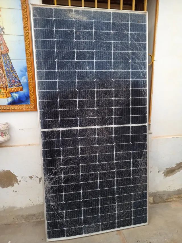 Placas solares para energía renovable. - Marco de aluminio. - Panel de vidrio.cristal roto como se ve en la foto pero siguen produciendo