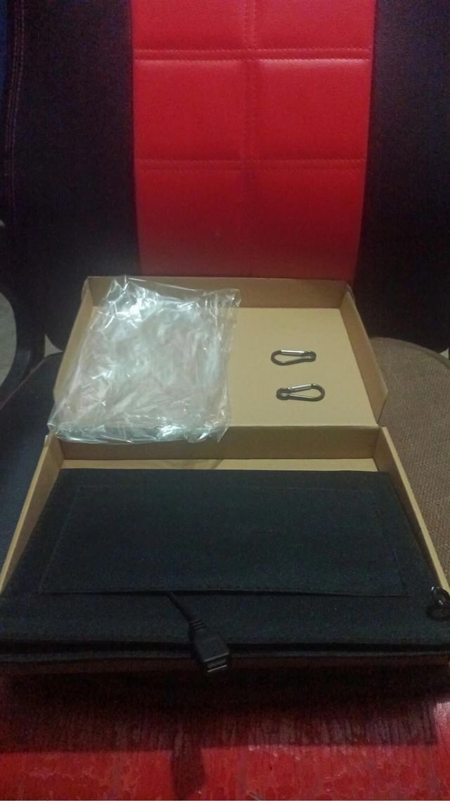 Detalles del productoPlacas solares portátiles, ideales para exteriores. Incluyen dos mosquetones para su sujeción.