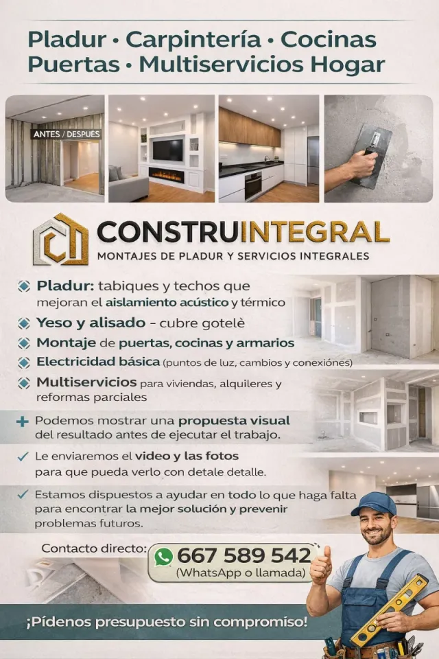Detalles del productoProfesionales en montaje de pladur y carpintería interior.