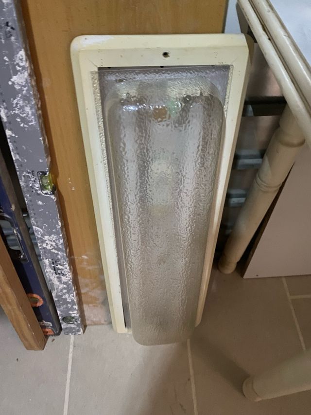 Detalles del productoPlafón de luz para cocina con sus dos focos incluidos. Su diseño es alargado y cuenta con una tulipa texturizada.