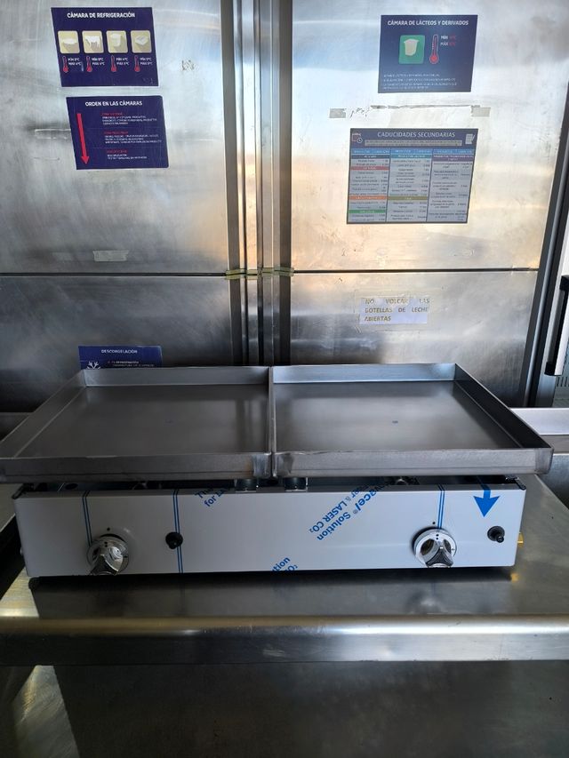 Plancha a gas doble marca Maiser. 40cm+40cm. 415€+IVA. Tenemos todo tipo de maquinaria de hostelería y alimentación. 611 32 41 09 Karla.