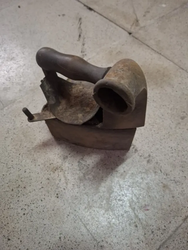 Plancha antigua de carbón, ideal para coleccionistas o decoración. - Material: Hierro y madera. - Diseño clásico y robusto.
