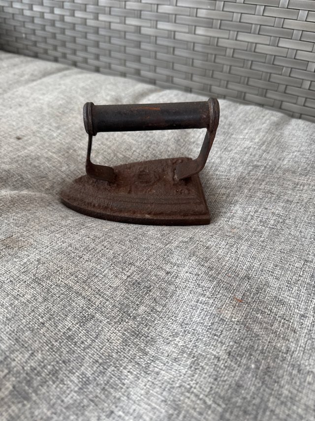 Plancha antigua de hierro macizo, ideal para decoración. - Material: Hierro fundido. - Diseño clásico y robusto. - Mango de madera.