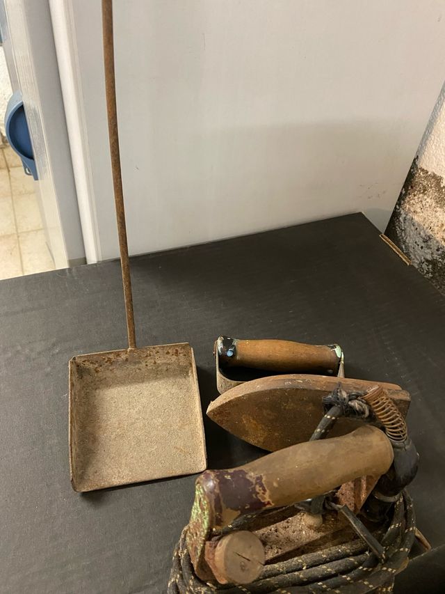 Plancha antigua y recogedor
