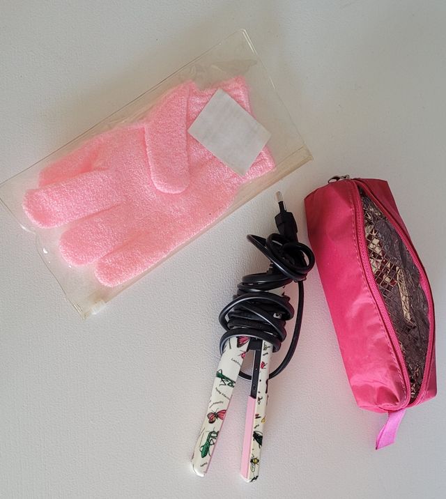 Plancha de pelo de viaje con guante, para el calor.