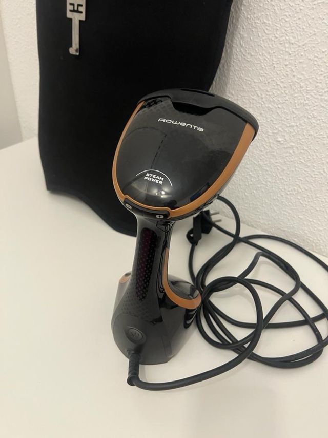 Detalles del productoPlancha de vapor portátil de la marca Rowenta. Su diseño es compacto y ergonómico.