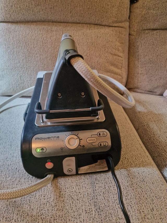 Detalles del productoPlancha de vapor Rowenta Expertise en color negro y detalles plateados. Cuenta con dial de control de temperatura y selector de vapor.