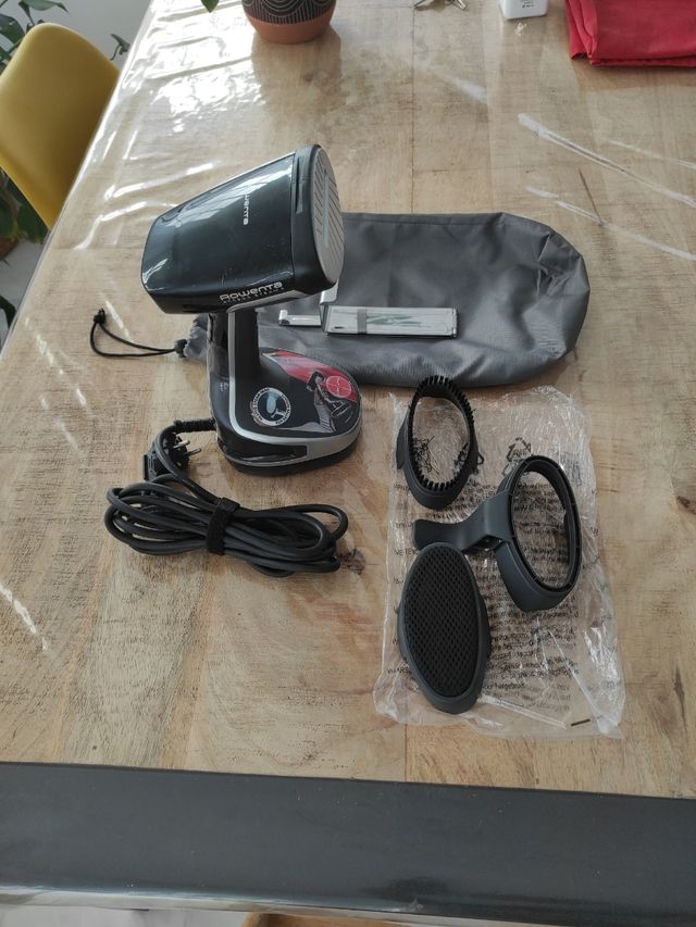 Detalles del productoRowenta Access Steam+ DR8150 - Cepillo de vapor, plancha vertical 1600 W, depósito 190 ml, elimina arrugas, olores y desinfecta, accesorio prendas delicadas, cable 3 m, Gris / Negro
