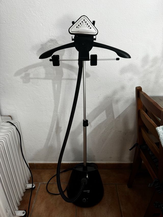 Detalles del productoPlancha de vapor vertical con un diseño moderno y funcional. Ideal para alisar prendas de ropa de forma rápida y eficiente.