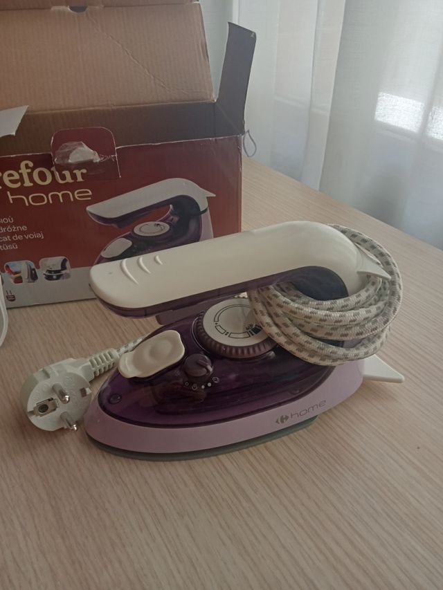 Plancha de viaje de tamaño pequeño Marca carrefour home Para planchar ropa Color morado Conserva su caja Con uso.