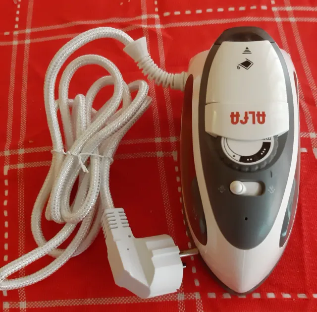 Plancha de viaje de la marca Alfa, compacta y fácil de usar. - Diseño ergonómico. - Cable de alimentación incluido. - Indicador de temperatura.