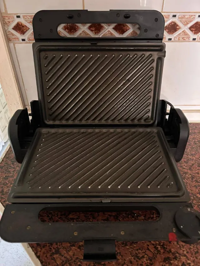 Plancha grill de tamaño doméstico, ideal para preparar tus comidas a la parrilla.