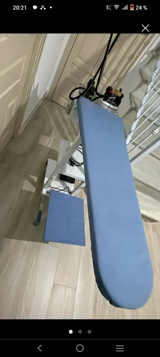 Plancha de ropa de uso industrial. - Superficie de planchado amplia. - Estructura robusta y estable. - Diseño profesional.