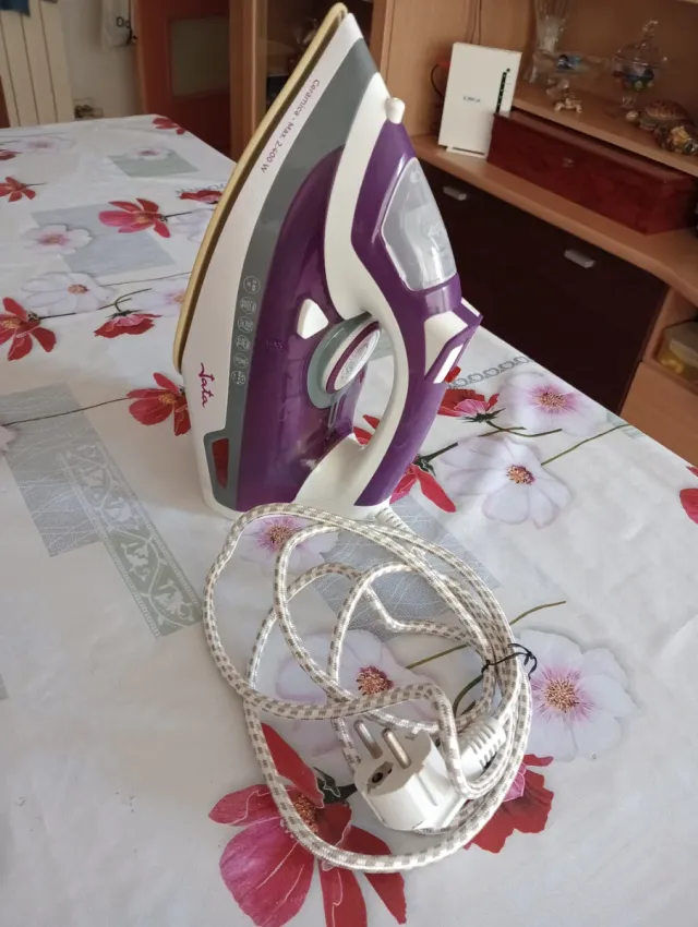Detalles del productoPlancha de vapor Jata con suela de cerámica. Como nueva creo que ni se ha usado nunca, solo un poco de agua para su comprobación de vapor, y que funcionae perfectamente,