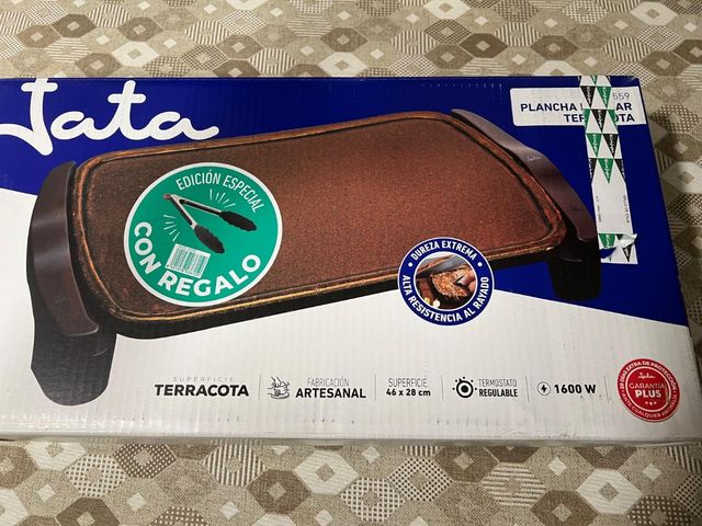 Detalles del productoPlancha de asar eléctrica Jata con superficie de terracota. Modelo de edición especial.
