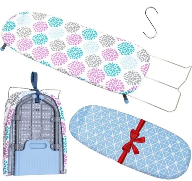 Detalles del productoPlancha de ropa, ideal para espacios reducidos. Se pliega fácilmente para guardarla. Incluye funda con estampado floral y otra lisa.