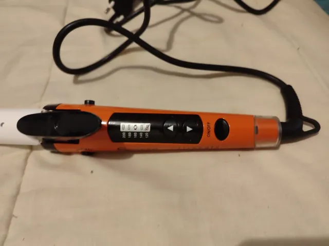 Detalles del productoHerramienta para el cabello con diseño en color naranja y negro.