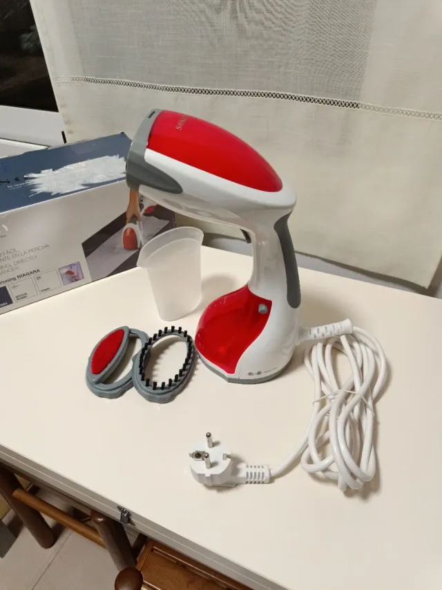 Detalles del productoPlancha vertical de mano Sokany, ideal para alisar prendas de ropa de forma rápida y sencilla. Ideal para planchar cortinas o prendas colgadas.