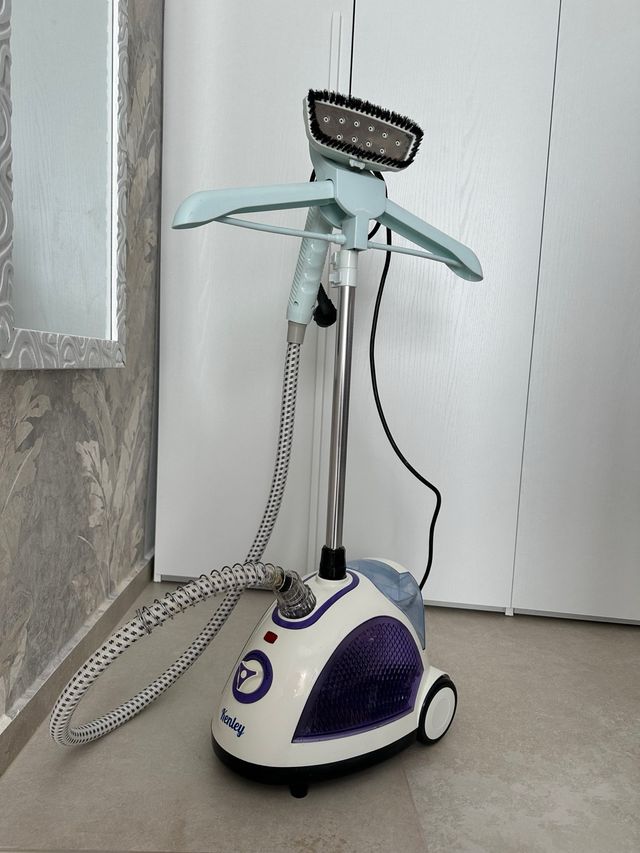 Detalles del productoPlancha vertical Kenley con ruedas para facilitar su movilidad. Incluye un perchero integrado y un cepillo para tejidos.
